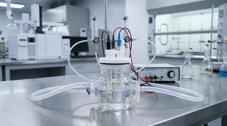 هذه ليست بقايا. إنها خطوط الحياة لإدارة الغاز. تسمح لك بتطهير النظام بغازات خاملة مثل الأرجون أو النيتروجين، وإزالة الأكسجين للتجارب اللاهوائية. تسمح للخلية بالتنفس دون أن تتلوث.